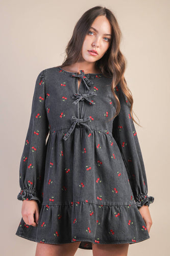 FLORAL SWEETHEART FRONT TIE MINI DRESS