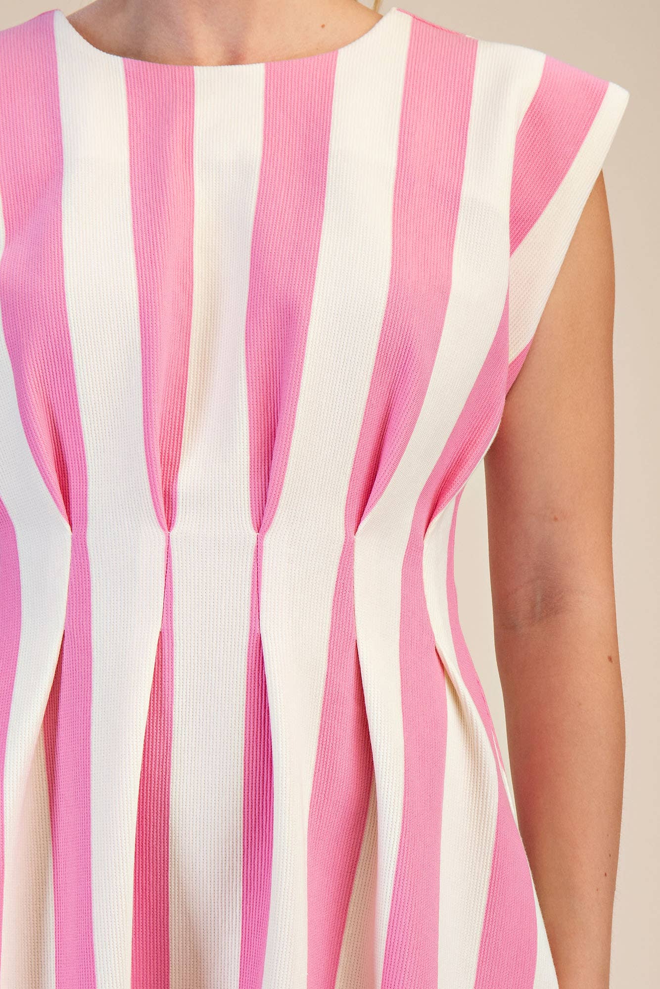 Round Neck Waist Pleated Mini Dress Model Height: 5'8" Wearing Size Small