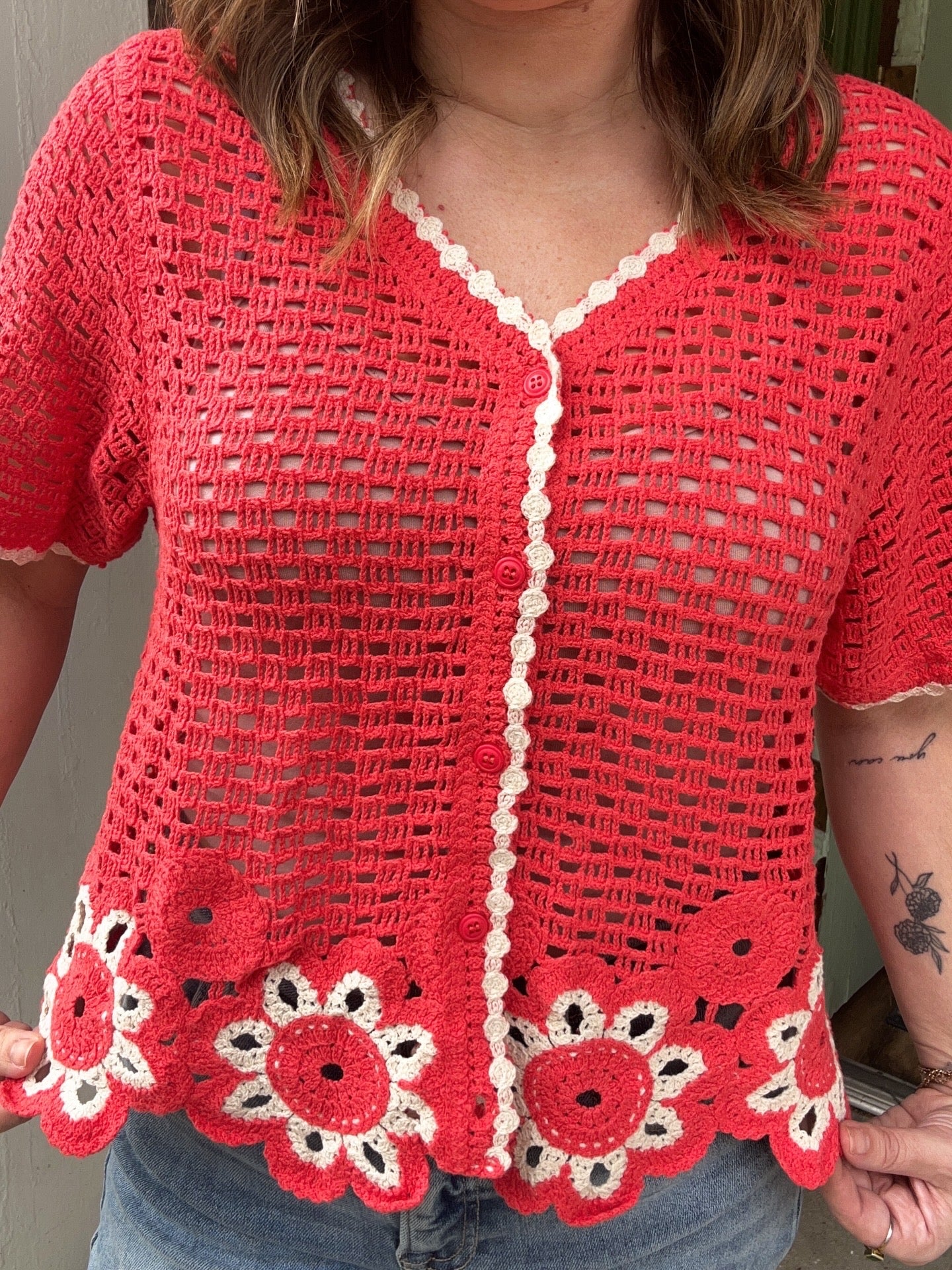 Tomato red crochet top