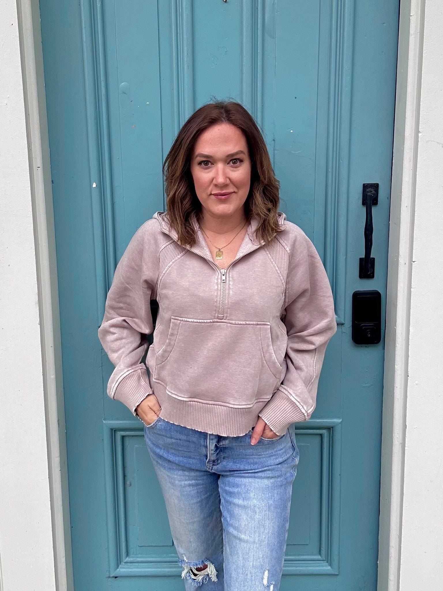 Half Zip Mineral wash hoodie
